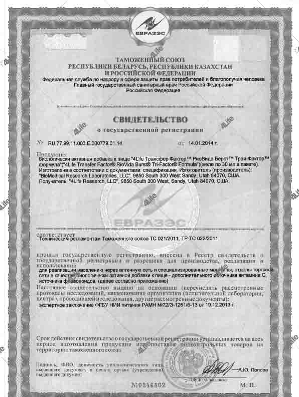 - Первый и единственный желееобразный продукт с содержанием 4Life Трансфер Фактора® Трай-Фактора™