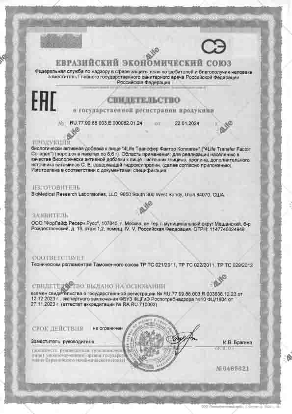 Ваша кожа – самый большой орган и одна из первых линий защиты вашей иммунной системы. Подарите ей дополнительную любовь и внимание с 4Life Трансфер Фактор® Коллаген! Вам нужен легкий способ получать ежедневную порцию коллагена? Попробуйте 4Life Трансфер Фактор Коллаген. 4Life Трансфер Фактор® Коллаген содержит 5 граммов белка и витамины С и Е, которые помогают восстановить здоровый уровень коллагена в организме, повысить увлажненность и эластичность кожи, а также оказывают антиоксидантную поддержку. Также в состав входит 4Life Трансфер Фактор Трай-Фактор Формула, помогающий иммунной системе распознавать, реагировать и запоминать потенциальные угрозы здоровью. Эта универсальная формула без вкуса является идеальным дополнением к любому напитку.